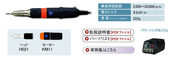 日本(MINIMO)M11S:转速:2000-20000rpm夹头尺寸:KP-036(2.34mm)/KP-032(3mm)